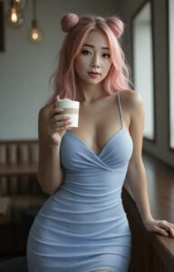 - Sipping sweetness in my cozy blue moment ๐ง๐ Pink buns & soft vibes only ๐ธ #SujiBoo