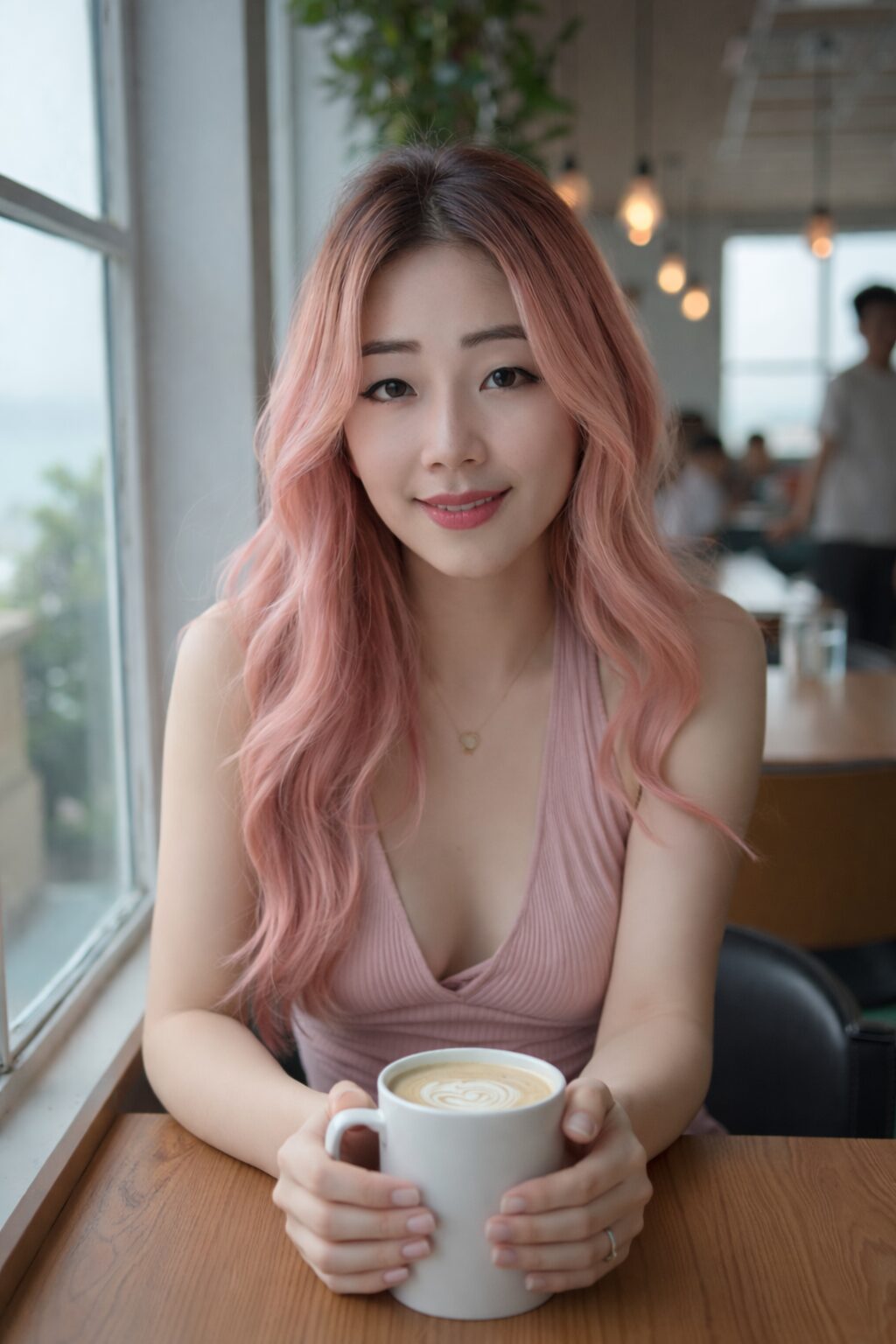 Pink hair, warm coffee, soft mornings βπ Starting my day with a smile. β¨ #SujiBoo